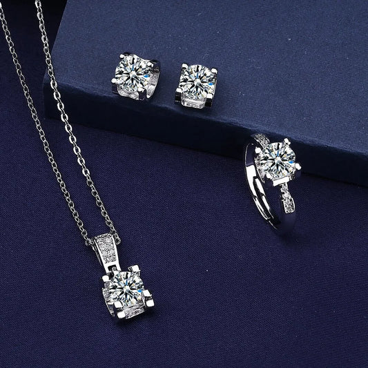 Moissanite Jewelry Set 1.6 Carat Earrings and Pendant Necklace.