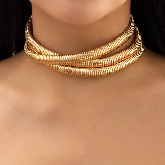 Exaggerated Chunky Metal Choker Necklace